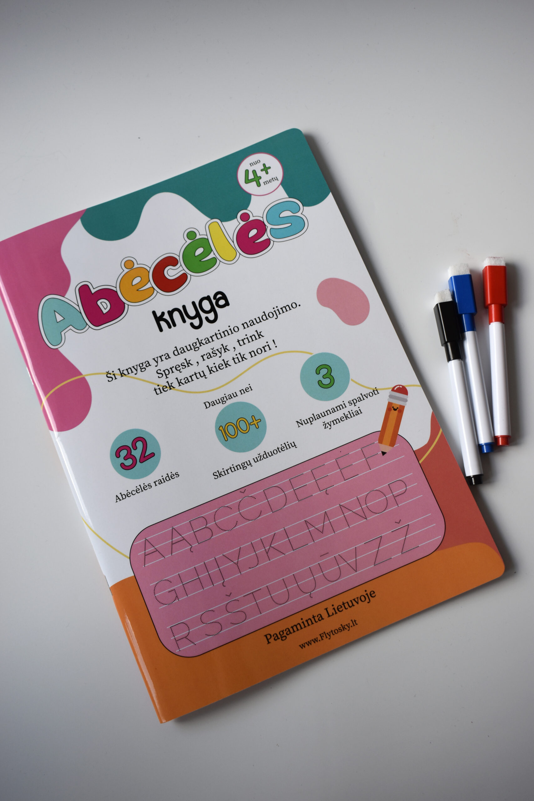 Ši daugkartinė užduočių knygelė „Abėcėlė” – puiki edukacinė priemonė, skirta žaismingai ir efektyviai mokytis visas 32 lietuvių kalbos raides.