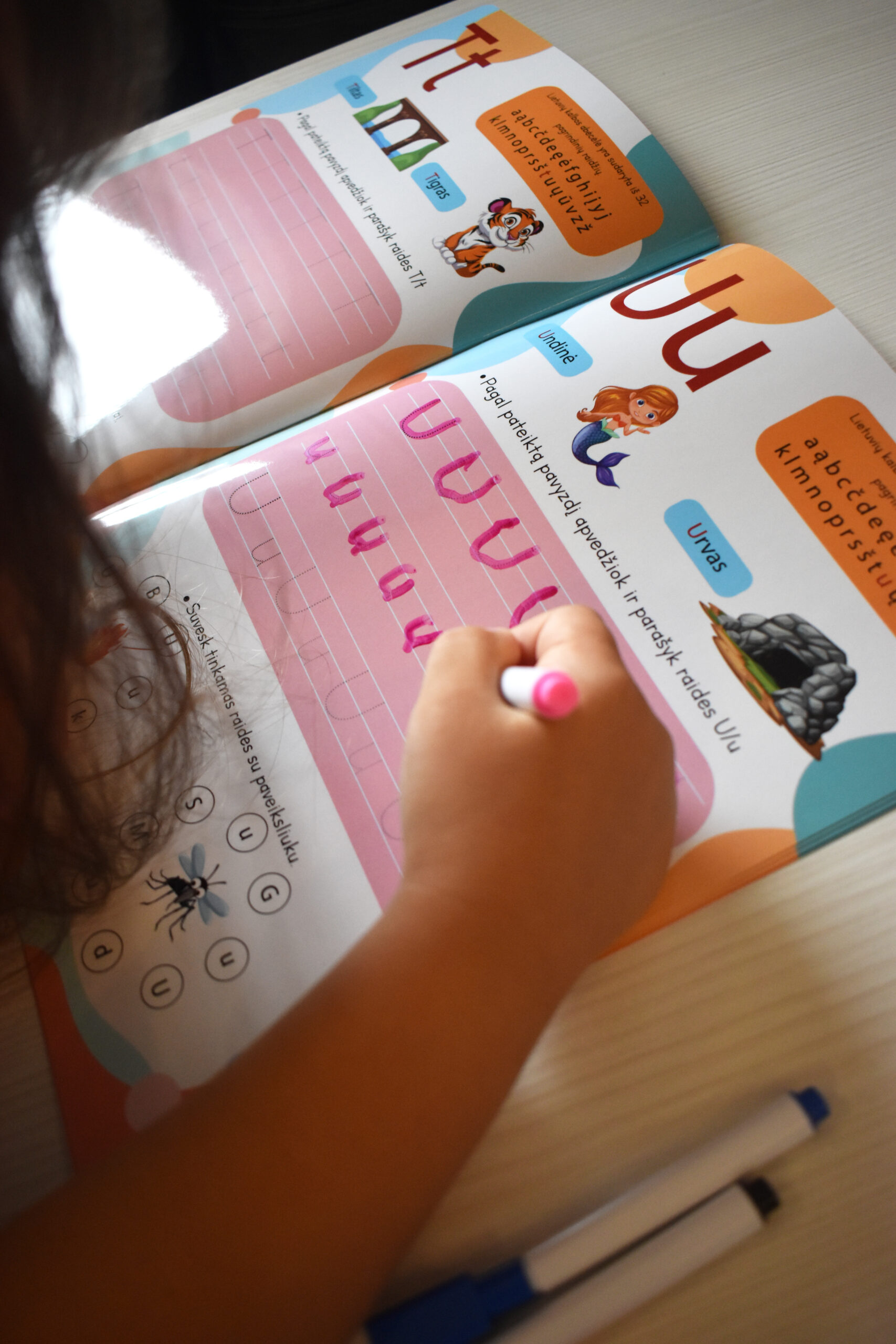 • Smulkiąją motoriką – rašymo užduotys skatina pirštukų miklumą ir taisyklingus rankos judesius.