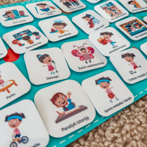 Tai yra daugkartinio naudojimo lavinamasis plakatas su daugkartiniais lipdukai kurie skirti klijuoti ant plakato. Iliustracijos spalvingos ir žaismingos.