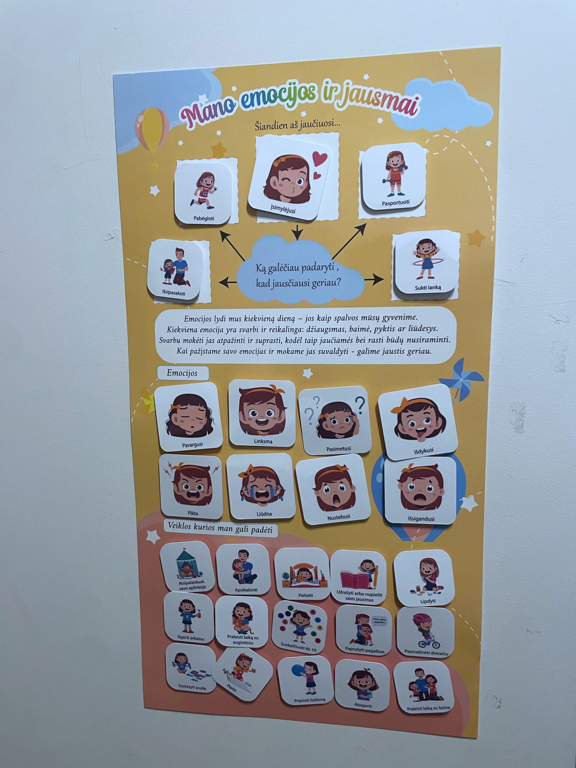 Emocijų valdymo plakatas puikiai tinkantis įvairaus amžius vaikams, jo pagalba vaikas susipažins su emocijomis ir jas išmoks valdyti.