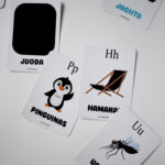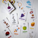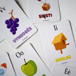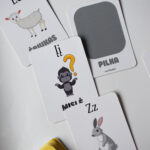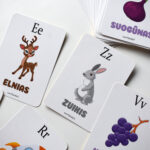 - 40 kortelių su raidėmis ir spalvotais paveikslėliais.