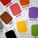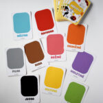 Žaidimo taisyklės – Visų pirmą korteles reikia atskirti ir surūšiuoti: kur yra spalvos , o kur žodžiai su paveikslėliais. Iš spalvų kortelių reikia išsirinkti vieną spalvą, kuri labiausiai patinka ir iš likusių kortelių surasti paveikslėlį tos spalvos,kuri buvo pasirinkta. Arba galima sukurti savo žaidimo variantą ir žaisti taip , kaip patinka.