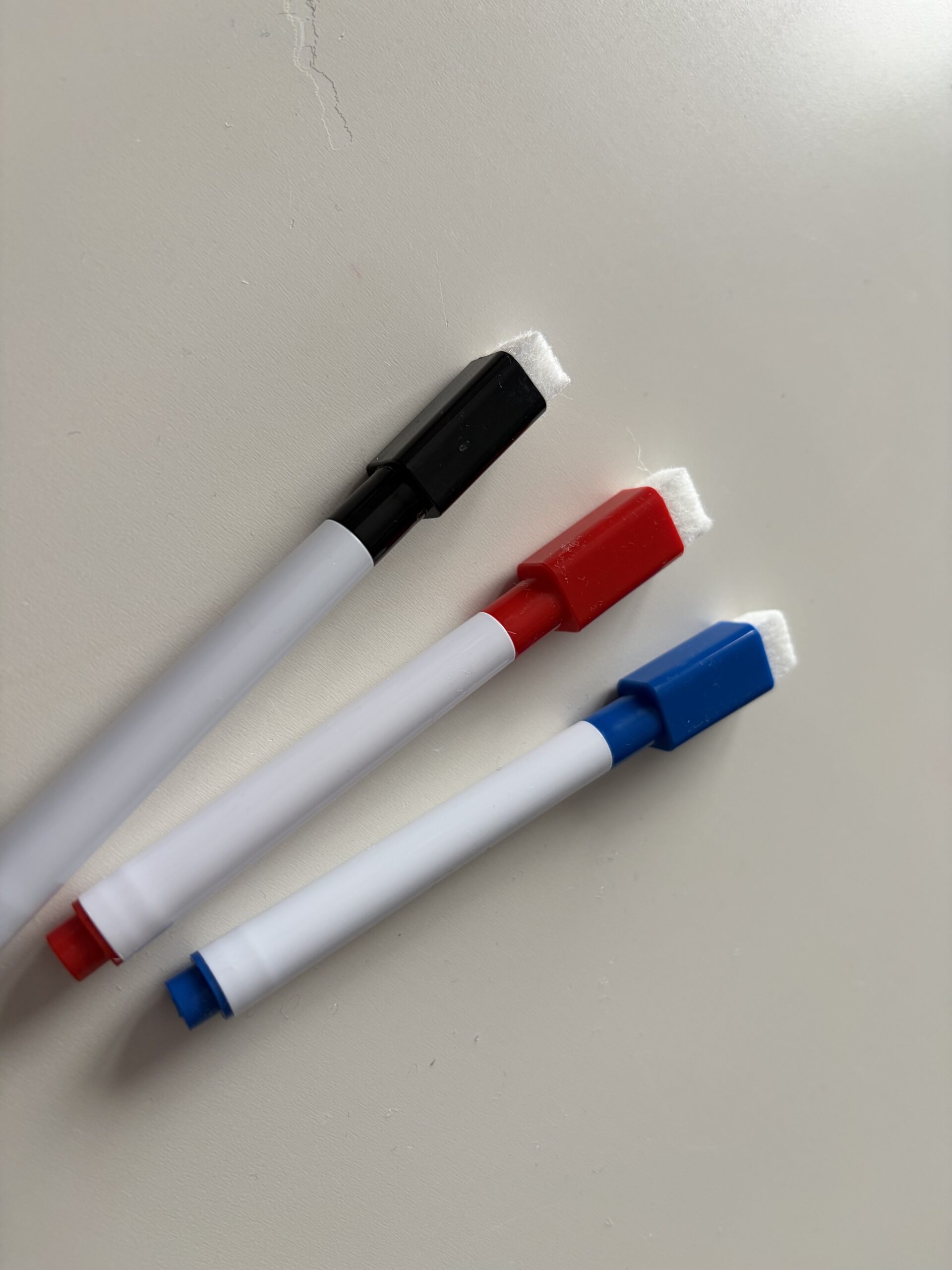 Nuplaunami spalvoti žymekliai skirti rašyti ant daugkartinio naudojimo plakato. Žymekliai turi specialų trintuką kuris puikiai nuvalo visas žymeklio paliktas žymes.